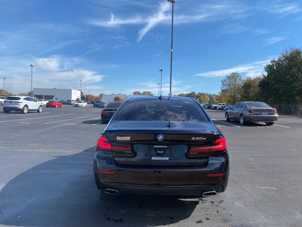 Clean CARFAX. Certified. Jet Black 2022 BMW 5 Series 530e iPerformance RWD 8-Speed Automatic Sport 2.0L 4-Cylinder ** NAVIGATION SYSTEM **, ** ALUMINUM WHEELS **, ** AMBIENT LIGHT PACKAGE **, ** BACKUP CAMERA **, ** BLUETOOTH **, ** CONVENIENCE LIGHT PACKAGE **, ** CONVENIENCE PACKAGE **, ** MOONROOF **, ** MULTIMEDIA PACKAGE **, ** POWER MIRROR PACKAGE **, ** SUNROOF/MOONROOF **, Black w/Perforated Sensatec Upholstery, 12 Speakers, ABS brakes, Air Conditioning, Apple CarPlay & Android Auto Compatibility, Auto High-beam Headlights, Auto tilt-away steering wheel, Auto-dimming door mirrors, Auto-dimming Rear-View mirror, Automatic temperature control, BMW Assist eCall, BMW TeleServices, Brake assist, Bumpers: body-color, Connected Package Pro, ConnectedDrive Services, Convenience Package, Delay-off headlights, Driver door bin, Driver vanity mirror, Dual front impact airbags, Dual front side impact airbags, Electronic Stability Control, Emergency communication system: BMW Assist eCall, Enhanced Bluetooth, Exterior Parking Camera Rear, Four wheel independent suspension, Front anti-roll bar, Front Bucket Seats, Front Center Armrest, Front dual zone A/C, Front reading lights, Fully automatic headlights, Garage door transmitter, Genuine wood console insert, Genuine wood dashboard insert, Genuine wood door panel insert, Heated door mirrors, Heated Front Seats, Hi-Fi Sound System, Illuminated entry, Leather steering wheel, Live Cockpit Pro w/Navi, Low tire pressure warning, Lumbar Support, Memory seat, Navigation System, Occupant sensing airbag, Outside temperature display, Overhead airbag, Panic alarm, Passenger vanity mirror, Perforated Sensatec Upholstery, Power door mirrors, Power driver seat, Power Front Seats, Power moonroof, Power passenger seat, Power steering, Power Tailgate, Power windows, Rain sensing wipers, Rear anti-roll bar, Rear reading lights, Rear seat center armrest, Rear window defroster, Remote keyless entry, Security system, Speed control, Speed-sensing steering, Speed-Sensitive Wipers, Split folding rear seat, Sport Seats, Sport steering wheel, Steering wheel memory, Steering wheel mounted audio controls, Tachometer, Telescoping steering wheel, Tilt steering wheel, Traction control, Trip computer, Turn signal indicator mirrors, Variably intermittent wipers, Wheels: 19" x 8" V-Spoke Burnished Orbit Grey.