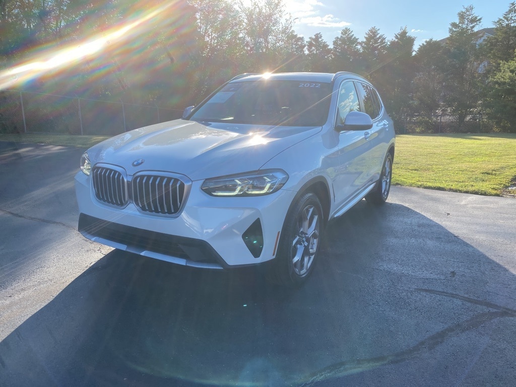 CARFAX One-Owner. Clean CARFAX. Certified. Mineral White Metallic 2022 BMW X3 sDrive30i RWD 8-Speed Automatic Sport 2.0L I4 TwinPower Turbo ** NAVIGATION SYSTEM **, ** NEW TIRES **, ** ALUMINUM WHEELS **, ** AMBIENT LIGHT PACKAGE **, ** BACKUP CAMERA **, ** BLUETOOTH **, ** CONVENIENCE LIGHT PACKAGE **, ** CONVENIENCE PACKAGE **, ** MOONROOF **, ** PREMIUM PACKAGE **, ** SUNROOF/MOONROOF **, 8-Speed Automatic Sport, 12 Speakers, ABS brakes, Air Conditioning, Apple CarPlay & Android Auto Compatibility, Auto High-beam Headlights, Auto-dimming door mirrors, Auto-dimming Rear-View mirror, Automatic temperature control, BMW Assist eCall, BMW TeleServices, Brake assist, Bumpers: body-color, Comfort Access Keyless Entry, Connected Package Pro, ConnectedDrive Services, Delay-off headlights, Driver door bin, Driver vanity mirror, Dual front impact airbags, Dual front side impact airbags, Electronic Stability Control, Emergency communication system: BMW Assist eCall, Enhanced Bluetooth, Exterior Parking Camera Rear, Fine Wood Open-Pored Ash Grain Trim, Four wheel independent suspension, Front anti-roll bar, Front Bucket Seats, Front Center Armrest, Front dual zone A/C, Front reading lights, Fully automatic headlights, Garage door transmitter, Genuine wood dashboard insert, Genuine wood door panel insert, Gesture Control, Heated door mirrors, Heated Front Seats, Heated Steering Wheel, Hi-Fi Sound System, Illuminated entry, Knee airbag, Live Cockpit Pro w/Navigation, Low tire pressure warning, Lumbar Support, Memory seat, Navigation, Navigation System, Occupant sensing airbag, Outside temperature display, Overhead airbag, Panic alarm, Panoramic Moonroof, Passenger door bin, Passenger vanity mirror, Perforated SensaTec Upholstery, Power door mirrors, Power driver seat, Power Front Seats, Power Liftgate, Power passenger seat, Power steering, Power windows, Premium Package 2, Rain sensing wipers, Rear air conditioning, Rear anti-roll bar, Rear reading lights, Rear seat center armrest, Rear window defroster, Rear window wiper, Remote Engine Start, Remote keyless entry, Roof rack: rails only, Security system, Speed control, Speed-sensing steering, Speed-Sensitive Wipers, Split folding rear seat, Spoiler, Sport steering wheel, Steering wheel mounted audio controls, Tachometer, Telescoping steering wheel, Tilt steering wheel, Traction control, Trip computer, Turn signal indicator mirrors, Variably intermittent wipers, Wheels: 19" x 7.5" Y-Spoke (Style 693), WiFi Hotspot.