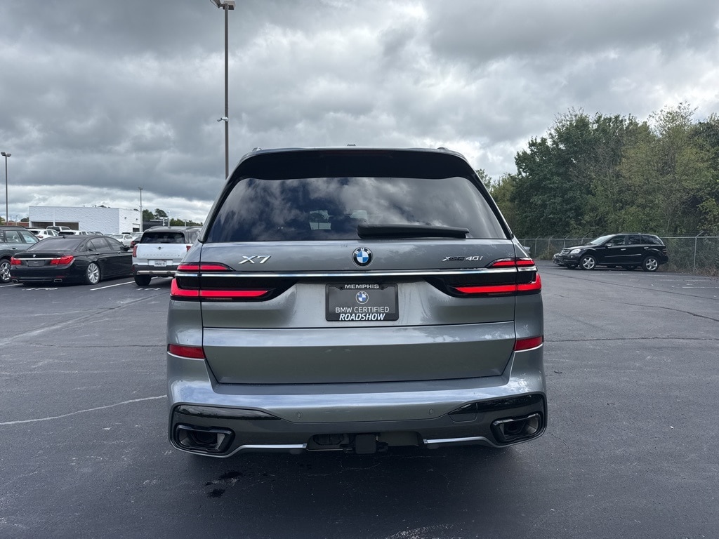 CARFAX One-Owner. Clean CARFAX. Certified. Skyscraper Gray Metallic 2023 BMW X7 xDrive40i AWD 8-Speed Automatic Sport 3.0L I6 DOHC 24V ** NAVIGATION SYSTEM **, ** NEW TIRES **, ** ADAPTIVE RIDE PACKAGE **, ** ALUMINUM WHEELS **, ** AMBIENT LIGHT PACKAGE **, ** AUDIO PACKAGE **, ** BACKUP CAMERA **, ** BLUETOOTH **, ** CLIMATE PACKAGE **, ** COMFORT PACKAGE **, ** CONVENIENCE LIGHT PACKAGE **, ** CONVENIENCE PACKAGE **, ** LUXURY PACKAGE **, ** MOONROOF **, ** MULTIMEDIA PACKAGE **, ** POWER MIRROR PACKAGE **, ** PREMIUM PACKAGE **, ** REMOTE START **, ** SAFETY PACKAGE **, ** SOUND PACKAGE **, ** SUNROOF/MOONROOF **, ** TECHNOLOGY PACKAGE **, 10 Speakers, 3rd row seats: split-bench, 5-Zone Automatic Climate Control, ABS brakes, Active Driving Assistant Pro, Adaptive suspension, Aerodynamic Kit, Air Conditioning, Aluminum Running Boards, Anthracite Alcantara Headliner, Apple CarPlay & Android Auto Compatibility, Apple CarPlay Compatibility, Auto High-beam Headlights, Auto tilt-away steering wheel, Auto-dimming door mirrors, Auto-dimming Rear-View mirror, Auto-leveling suspension, Automatic temperature control, BMW Assist eCall, BMW TeleServices, Brake assist, Bumpers: body-color, Climate Comfort Package, Compass, Connected Package Pro, ConnectedDrive Services, Delay-off headlights, Drive Recorder, Driver door bin, Driver vanity mirror, Driving Assistance Professional Package, Dual front impact airbags, Dual front side impact airbags, Electronic Stability Control, Emergency communication system: BMW Assist eCall, Executive Package (DISC), Extended Shadowline Trim, Exterior Parking Camera Rear, Four wheel independent suspension, Front & Rear Heated Seats, Front anti-roll bar, Front Bucket Seats, Front Center Armrest, Front dual zone A/C, Front Massaging Seats, Front reading lights, Front Ventilated Seats, Fully automatic headlights, Garage door transmitter, Genuine wood console insert, Genuine wood dashboard insert, Genuine wood door panel insert, Gesture Control, Glass Controls, harman/kardon Surround Sound System, Head restraints memory, Heads-Up Display, Heated & Cooled Cup Holders, Heated door mirrors, Heated front seats, Heated Multi-Contour Seats, Heated steering wheel, Illuminated entry, Illuminated Kidney Grille, Knee airbag, Live Cockpit Pro w/Navi, Low tire pressure warning, M Sport Brakes w/Black Calipers, M Sport Brakes w/Blue Calipers, M Sport Exhaust System, M Sport Package, M Sport Package (337), M Sport Package Pro, M Sport Professional Package, M Steering Wheel, Memory seat, Navigation system: BMW Maps Navigation, Occupant sensing airbag, Outside temperature display, Overhead airbag, Panic alarm, Panoramic Sky Lounge LED Roof, Parking Assistance Package, Parking Assistant Professional, Passenger door bin, Passenger vanity mirror, Personal eSIM 5G, Power adjustable front head restraints, Power door mirrors, Power driver seat, Power Front Seats, Power moonroof: Panorama, Power passenger seat, Power steering, Power windows, Rain sensing wipers, Rear air conditioning, Rear anti-roll bar, Rear dual zone A/C, Rear Electric Side Window Shades, Rear reading lights, Rear seat center armrest, Rear window defroster, Rear window wiper, Reclining 3rd row seat, Remote keyless entry, Security system, Sensafin Upholstery, Shadowline Exterior Trim, Soft-Close Automatic Doors, Speed control, Speed-sensing steering, Speed-Sensitive Wipers, Split folding rear seat, Spoiler, Sport steering wheel, Steering wheel memory, Steering wheel mounted audio controls, Surround View w/3D View, Tachometer, Telescoping steering wheel, Tilt steering wheel, Traction control, Trailer Hitch, Trip computer, Turn signal indicator mirrors, Variably intermittent wipers, Wheels: 21" x 9.5" Double-Spoke Bi-Color Orbit Grey, Wireless Charging Device, Without Lines Designation Outside.