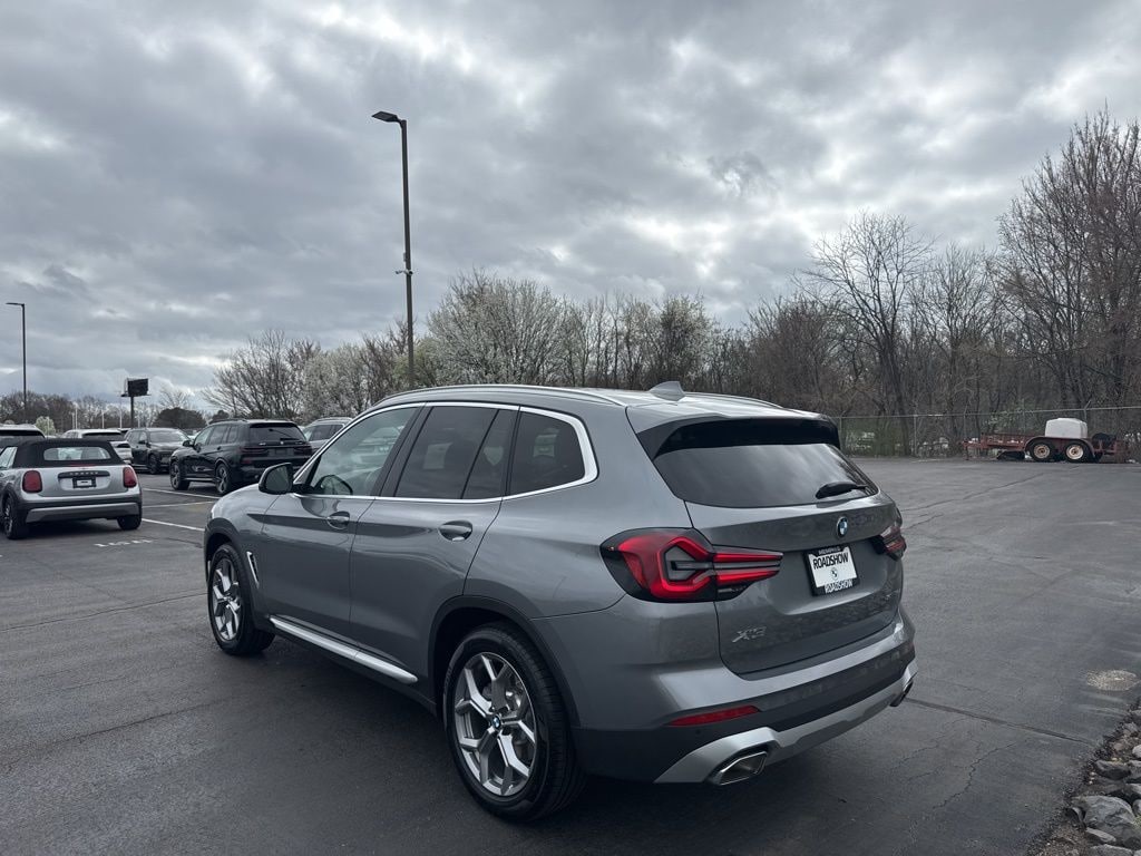 CARFAX One-Owner. Clean CARFAX. Skyscraper Gray Metallic 2023 BMW X3 sDrive30i RWD 8-Speed Automatic Sport 2.0L I4 TwinPower Turbo ** NAVIGATION SYSTEM **, ** ALUMINUM WHEELS **, ** AMBIENT LIGHT PACKAGE **, ** BACKUP CAMERA **, ** BLUETOOTH **, ** CONVENIENCE LIGHT PACKAGE **, ** CONVENIENCE PACKAGE **, ** MOONROOF **, ** MULTIMEDIA PACKAGE **, ** POWER MIRROR PACKAGE **, ** PREMIUM PACKAGE **, ** SUNROOF/MOONROOF **, 8-Speed Automatic Sport, 12 Speakers, ABS brakes, Air Conditioning, Aluminum Trim, Apple CarPlay & Android Auto Compatibility, Auto High-beam Headlights, Auto-dimming door mirrors, Auto-dimming Rear-View mirror, Automatic temperature control, BMW Assist eCall, BMW TeleServices, Brake assist, Bumpers: body-color, Comfort Access Keyless Entry, Connected Package Pro, ConnectedDrive Services, Delay-off headlights, Driver door bin, Driver Lumbar Support, Driver vanity mirror, Dual front impact airbags, Dual front side impact airbags, Electronic Stability Control, Emergency communication system: BMW Assist eCall, Enhanced USB & Bluetooth w/Smartphone Integration, Exterior Parking Camera Rear, Four wheel independent suspension, Front anti-roll bar, Front Bucket Seats, Front Center Armrest, Front dual zone A/C, Front reading lights, Fully automatic headlights, Garage door transmitter, Genuine wood dashboard insert, Genuine wood door panel insert, Head-Up Display, Heated door mirrors, Heated Front Seats, Heated Steering Wheel, Hi-Fi Sound System, Illuminated entry, Knee airbag, Leather steering wheel, Live Cockpit Pro w/Navigation, Low tire pressure warning, Memory seat, Navigation, Navigation System, Occupant sensing airbag, Outside temperature display, Overhead airbag, Overhead console, Panic alarm, Panoramic Moonroof, Passenger vanity mirror, Perforated SensaTec Upholstery, Power door mirrors, Power driver seat, Power Front Seats, Power Liftgate, Power passenger seat, Power steering, Power windows, Premium Package, Rain sensing wipers, Rear air conditioning, Rear anti-roll bar, Rear reading lights, Rear seat center armrest, Rear window defroster, Rear window wiper, Remote Engine Start, Remote keyless entry, Security system, Speed control, Speed-sensing steering, Speed-Sensitive Wipers, Split folding rear seat, Spoiler, Sport steering wheel, Steering wheel mounted audio controls, Tachometer, Telescoping steering wheel, Tilt steering wheel, Traction control, Trip computer, Turn signal indicator mirrors, Variably intermittent wipers, Wheels: 19" x 7.5" Y-Spoke (Style 693), WiFi Hotspot.