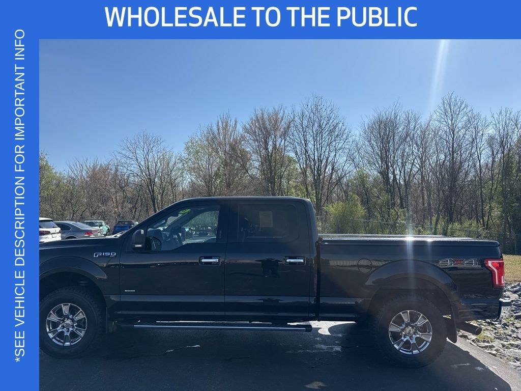 Clean CARFAX. Tuxedo Black Metallic 2015 Ford F-150 XLT 4WD 6-Speed Automatic Electronic 3.5L V6 ** NEW TIRES **, ** BACKUP CAMERA **, ** BLUETOOTH **, ** REMOTE START **, 4WD, 10-Way Power Driver's & Passenger Seats, 110V/400W Outlet, 4.2" Productivity Screen in Instrument Cluster, 8-Way Power Driver's Seat, Auto-Dimming Rear-View Mirror, Chrome Billet Style Grille w/Chrome Surround, Chrome Door & Tailgate Handles w/Body-Color Bezel, Chrome Step Bars, Class IV Trailer Hitch Receiver, Equipment Group 302A Luxury, Heated Front Seats, Leather-Wrapped Steering Wheel, LED Box Lighting, Power Driver/Passenger Lumbar, Power Glass Heated Sideview Mirrors, Power steering, Power-Adjustable Pedals, Power-Sliding Rear Window, Radio: Single-CD w/SiriusXM Satellite, Rear Under-Seat Storage, Rear View Camera w/Dynamic Hitch Assist, Rear Window Defroster, Remote Start System, Reverse Sensing System, Single-Tip Chrome Exhaust, SYNC Voice Recognition Communications, SYNC with MyFord Touch, Wheels: 18" Chrome-Like PVD, XLT Chrome Appearance Package.