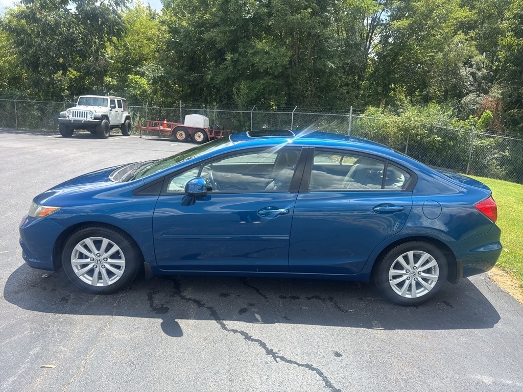 Clean CARFAX. Dyno Blue Pearl 2012 Honda Civic EX-L FWD 5-Speed Automatic 1.8L I4 SOHC 16V i-VTEC ** NEW TIRES **, ** ALUMINUM WHEELS **, ** BLUETOOTH **, ** LEATHER SEATS **, ** MOONROOF **, ** SUNROOF/MOONROOF **, Gray w/Leather Seat Trim, 160-Watt AM/FM/CD Audio System, 4-Wheel Disc Brakes, 6 Speakers, ABS brakes, Air Conditioning, Brake assist, Bumpers: body-color, CD player, Delay-off headlights, Driver door bin, Driver vanity mirror, Dual front impact airbags, Dual front side impact airbags, Electronic Stability Control, Four wheel independent suspension, Front anti-roll bar, Front Bucket Seats, Front Center Armrest, Front reading lights, Fully automatic headlights, Heated door mirrors, Heated front seats, Illuminated entry, Leather Seat Trim, Low tire pressure warning, Occupant sensing airbag, Outside temperature display, Overhead airbag, Panic alarm, Passenger door bin, Passenger vanity mirror, Power door mirrors, Power moonroof, Power steering, Power windows, Rear anti-roll bar, Rear seat center armrest, Rear window defroster, Reclining Heated Front Bucket Seats, Remote keyless entry, Security system, Speed control, Speed-sensing steering, Split folding rear seat, Steering wheel mounted audio controls, Tachometer, Telescoping steering wheel, Tilt steering wheel, Traction control, Trip computer.