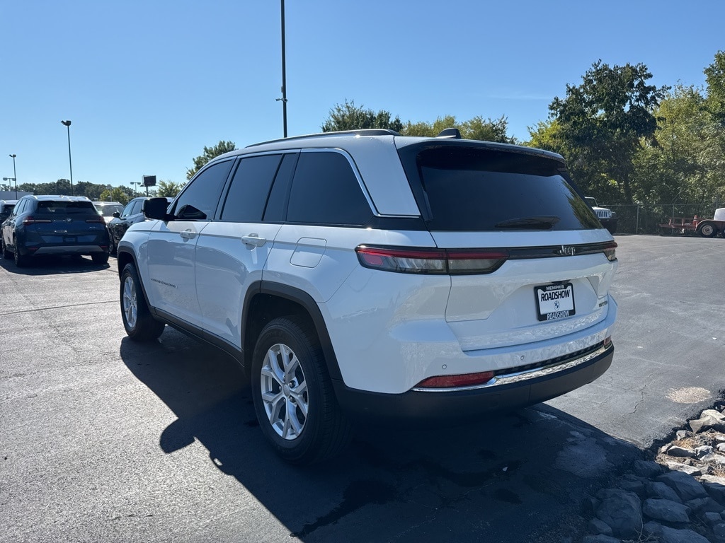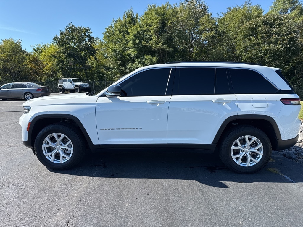 Clean CARFAX. Bright White Clearcoat 2023 Jeep Grand Cherokee Limited RWD 8-Speed Automatic 3.6L V6 24V VVT ** NAVIGATION SYSTEM **, ** ALUMINUM WHEELS **, ** BACKUP CAMERA **, ** BLUETOOTH **, ** CONVENIENCE LIGHT PACKAGE **, ** CONVENIENCE PACKAGE **, ** LEATHER SEATS **, ** MOONROOF **, ** REMOTE START **, ** SUNROOF/MOONROOF **, 6 Speakers, ABS brakes, Active Noise Control System, Air Conditioning, Anti-whiplash front head restraints, Auto High-beam Headlights, Automatic temperature control, Brake assist, Bumpers: body-color, Capri Leatherette Seats, Compass, Delay-off headlights, Driver door bin, Driver vanity mirror, Dual front impact airbags, Dual front side impact airbags, Dual-Pane Panoramic Sunroof, Electronic Stability Control, Emergency communication system, Four wheel independent suspension, Front anti-roll bar, Front Bucket Seats, Front Center Armrest w/Storage, Front dual zone A/C, Front fog lights, Front License Plate Bracket, Front reading lights, Fully automatic headlights, Garage door transmitter, Heated door mirrors, Heated front seats, Heated rear seats, Heated steering wheel, Illuminated entry, Knee airbag, Low tire pressure warning, Memory seat, Molded In Color Black/Gloss Black Roof Rails, Navigation System, Normal Duty Suspension, Occupant sensing airbag, Outside temperature display, Overhead airbag, Overhead console, Panic alarm, ParkView Rear Back-Up Camera, Passenger door bin, Passenger vanity mirror, Power door mirrors, Power driver seat, Power Liftgate, Power passenger seat, Power steering, Power windows, Quick Order Package 23E, Rear anti-roll bar, Rear reading lights, Rear window defroster, Rear window wiper, Remote keyless entry, Security system, Speed control, Speed-Sensitive Wipers, Split folding rear seat, Spoiler, Steering wheel mounted audio controls, Tachometer, Telescoping steering wheel, Tilt steering wheel, Traction control, Trip computer, Turn signal indicator mirrors, Voltmeter, Wheels: 18" x 8" Fully Painted Aluminum.