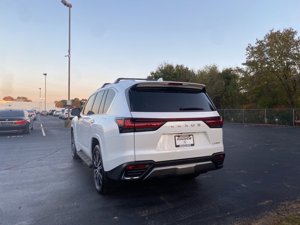 CARFAX One-Owner. Eminent White Pearl 2025 Lexus LX 600 Luxury 4WD 10-Speed Automatic V6 ** NAVIGATION SYSTEM **, ** ADAPTIVE RIDE PACKAGE **, ** ALUMINUM WHEELS **, ** AMBIENT LIGHT PACKAGE **, ** AUDIO PACKAGE **, ** BACKUP CAMERA **, ** BLUETOOTH **, ** CLIMATE PACKAGE **, ** CONVENIENCE LIGHT PACKAGE **, ** CONVENIENCE PACKAGE **, ** LEATHER SEATS **, ** LUXURY PACKAGE **, ** MOONROOF **, ** MULTIMEDIA PACKAGE **, ** PREMIUM PACKAGE **, ** REAR CLIMATE PACKAGE **, ** SOUND PACKAGE **, ** SUNROOF/MOONROOF **, ** TECHNOLOGY PACKAGE **, Black w/Black Open Pore w/Leather Seat Trim or Semi-Aniline Leather Seat Trim, 3rd row seats: split-bench, ABS brakes, Adaptive suspension, Air Conditioning, Apple CarPlay/Android Auto, Auto High-beam Headlights, Auto tilt-away steering wheel, Auto-dimming door mirrors, Auto-dimming Rear-View mirror, Auto-leveling suspension, Automatic temperature control, Brake assist, Bumpers: body-color, Compass, Delay-off headlights, Driver door bin, Driver vanity mirror, Dual front impact airbags, Dual front side impact airbags, Electronic Stability Control, Emergency communication system: Safety Connect (up to 10-year trial subscription included), Exterior Parking Camera Rear, Front anti-roll bar, Front Bucket Seats, Front Center Armrest, Front dual zone A/C, Front fog lights, Front reading lights, Front wheel independent suspension, Fully automatic headlights, Garage door transmitter: HomeLink, Genuine wood console insert, Genuine wood door panel insert, Headlight cleaning, Heads-Up Display, Heated & Ventilated Front Bucket Seats, Heated door mirrors, Heated front seats, Heated rear seats, Heated steering wheel, Illuminated entry, Leather Shift Knob, Leather steering wheel, Low tire pressure warning, Luxury Package, Memory seat, Navigation System, Occupant sensing airbag, Outside temperature display, Overhead airbag, Overhead console, Panic alarm, Passenger door bin, Passenger vanity mirror, Power door mirrors, Power driver seat, Power Liftgate, Power moonroof, Power passenger seat, Power steering, Power windows, Rain sensing wipers, Rear air conditioning, Rear dual zone A/C, Rear reading lights, Rear seat center armrest, Rear side impact airbag, Rear window defroster, Rear window wiper, Reclining 3rd row seat, Remote keyless entry, Security system, Semi-Aniline Leather Seat Trim, Speed control, Speed-sensing steering, Split folding rear seat, Spoiler, Steering wheel memory, Steering wheel mounted audio controls, Tachometer, Telescoping steering wheel, Tilt steering wheel, Traction control, Trip computer, Turn signal indicator mirrors, Variably intermittent wipers, Ventilated front seats, Ventilated rear seats, Voltmeter, Wheels: 22" Forged Alloy w/Machined Finish.