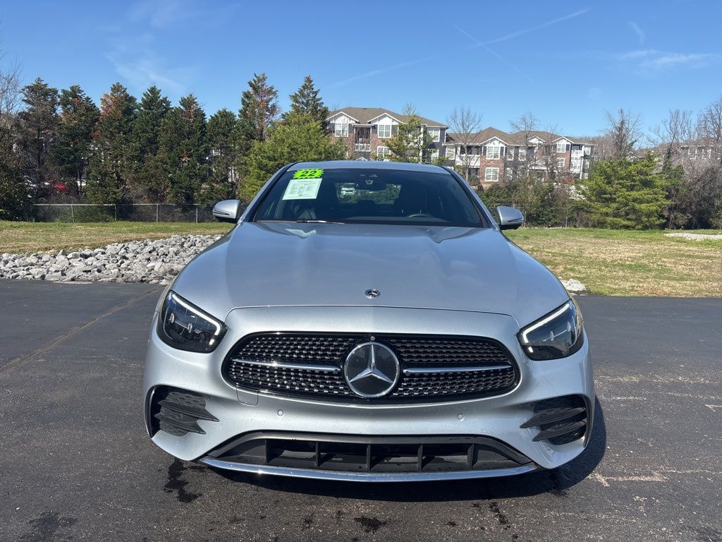 CARFAX One-Owner. Clean CARFAX. Cirrus Silver Metallic 2022 Mercedes-Benz E-Class E 350 RWD 9-Speed Automatic I4 ** NAVIGATION SYSTEM **, ** ALUMINUM WHEELS **, ** AMBIENT LIGHT PACKAGE **, ** AUDIO PACKAGE **, ** BACKUP CAMERA **, ** BLUETOOTH **, ** CONVENIENCE LIGHT PACKAGE **, ** CONVENIENCE PACKAGE **, ** MOONROOF **, ** SOUND PACKAGE **, ** SUNROOF/MOONROOF **, ABS brakes, Air Conditioning, Android Auto®, Anti-whiplash front head restraints, Apple CarPlay®, Apple CarPlay®/Android Auto®, Auto High-beam Headlights, Auto tilt-away steering wheel, Auto-dimming door mirrors, Auto-dimming Rear-View mirror, Automatic temperature control, Brake assist, Bumpers: body-color, Burmester® Surround Sound System, Delay-off headlights, Driver door bin, Driver vanity mirror, Dual front impact airbags, Dual front side impact airbags, Electronic Stability Control, Emergency communication system: Mercedes me connect, Exterior Parking Camera Rear, Four wheel independent suspension, Front anti-roll bar, Front Bucket Seats, Front Center Armrest, Front dual zone A/C, Front reading lights, Fully automatic headlights, Garage door transmitter: HomeLink, Genuine wood console insert, Genuine wood dashboard insert, Genuine wood door panel insert, HANDS-FREE ACCESS, Head restraints memory, Heated door mirrors, Heated Front Seats, Heated front seats, Illuminated entry, Knee airbag, Low tire pressure warning, MB-Tex Upholstery, Memory seat, Navigation system: MBUX, Occupant sensing airbag, Outside temperature display, Overhead airbag, Overhead console, Panic alarm, PARKTRONIC w/Active Parking Assist, Passenger door bin, Passenger vanity mirror, Power adjustable front head restraints, Power adjustable rear head restraints, Power door mirrors, Power driver seat, Power moonroof, Power passenger seat, Power steering, Power windows, Premium Package, Rain sensing wipers, Rear anti-roll bar, Rear fog lights, Rear reading lights, Rear seat center armrest, Rear window defroster, Remote keyless entry, Security system, SiriusXM Radio, Smartphone Integration, Speed control, Speed-sensing steering, Split folding rear seat, Steering wheel memory, Steering wheel mounted audio controls, Surround View System, Tachometer, Telescoping steering wheel, Tilt steering wheel, Traction control, Trip computer, Turn signal indicator mirrors, Variably intermittent wipers, Wheels: 19 x 8.0 AMG® 10-Spoke.Odometer is 1414 miles below market average! 23/31 City/Highway MPG